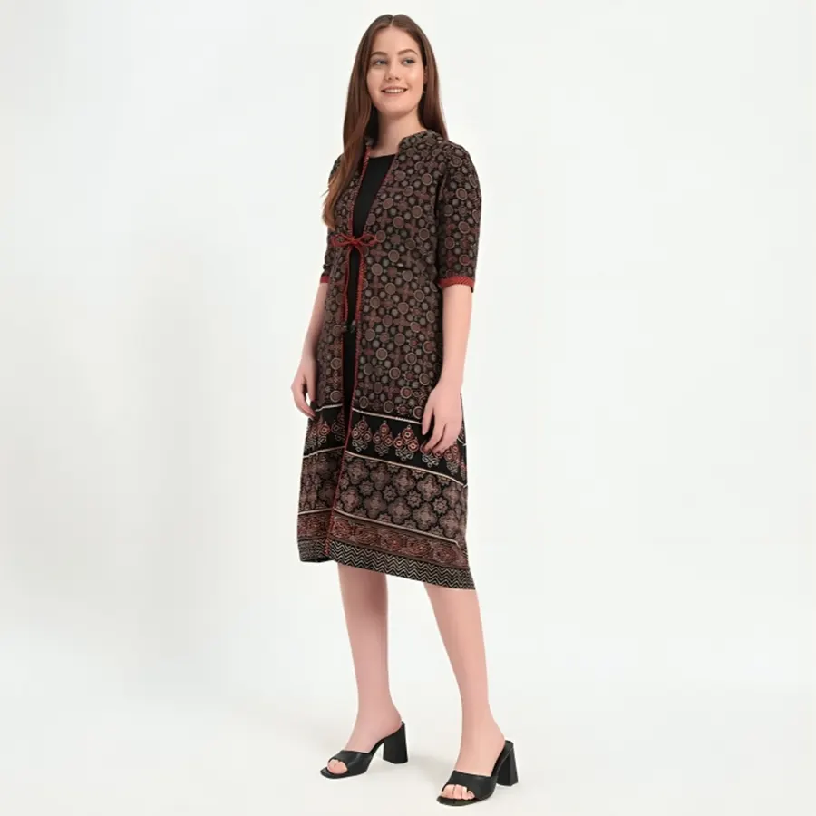 Front-open short Jacket with an in-built string, finished with Tassels and a cotton dori detailing along the Lapel.