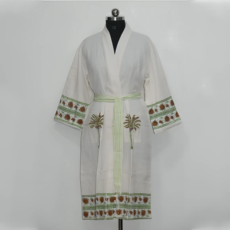 Shop hand block print bathrobe.